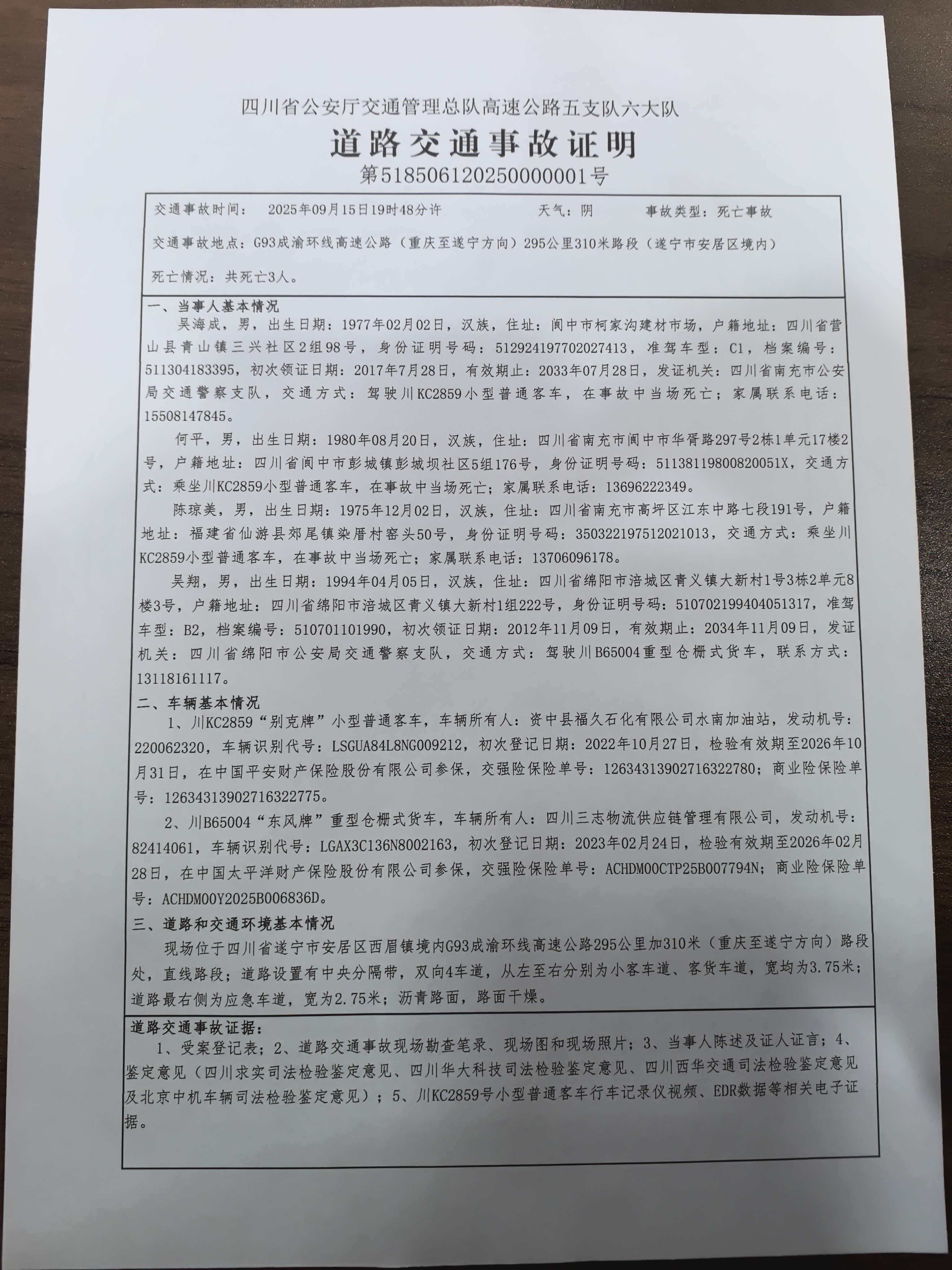 你好我想咨詢一下事情,我這邊四川高速公路遂寧G93高速公路298公里處,9.15號別克小車追尾我這邊貨車,造成小車三個(gè)人當(dāng)場死亡,兩車受損嚴(yán)重,經(jīng)過北京中車車輛鑒定中心鑒定,小車車輛產(chǎn)品質(zhì)量缺陷問題,到現(xiàn)在上汽通用公司都不愿意來處理
