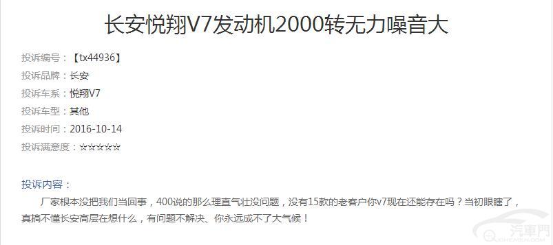 車(chē)主蘇先生投訴表示:廠家根本沒(méi)把我們當(dāng)回事,400說(shuō)的那么理直氣壯沒(méi)問(wèn)題,沒(méi)有15款的老客戶你v7現(xiàn)在還能存在嗎?當(dāng)初眼瞎了,真搞不懂長(zhǎng)安高層在想什么,有問(wèn)題不解決、你永遠(yuǎn)成不了大氣候!