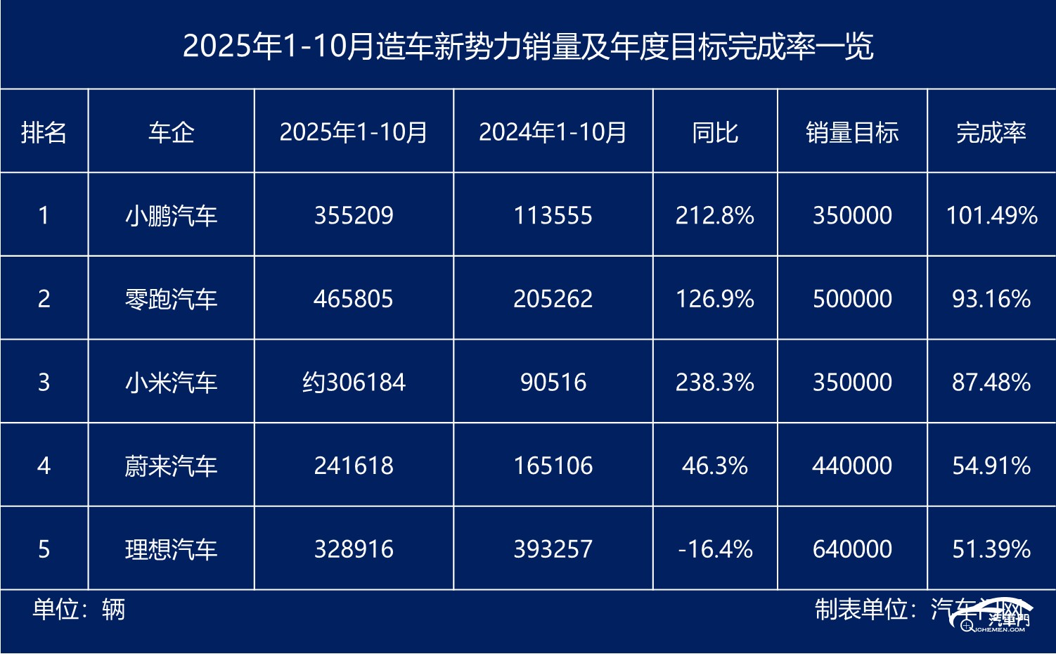 2025年1-10月造車新勢(shì)力銷量盤點(diǎn):某車企率先交卷